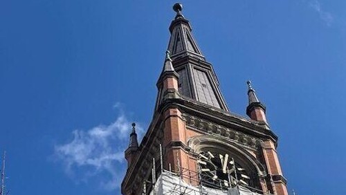 Noch bis zum Ende des Sommers bleibt der Turm der Johanneskirche noch in Teilen eingerüstet, bestätigte der Architekt Thomas Scheplitz. Voraussichtlich im Herbst könnten die fünf Glocken im Kirchturm erstmals wieder läuten, mit einem Abschluss der Restaurationsarbeiten rechnet der Architekt im Sommer 2026.