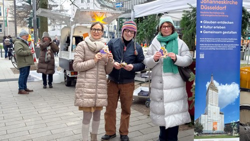 Im Rahmen einer weihnachtlichen Aktion hat die Evangelische Kirche in Düsseldorf am Samstag, 14. Dezember, vor der evangelischen Johanneskirche über die denkmalgerechte Sanierung dieses bedeutenden Kulturdenkmals informiert. Die Johanneskirche, ein lebendiger Ort des Glaubens, der Kultur und der Begegnung im Herzen der Düsseldorfer Innenstadt, steht im Mittelpunkt eines umfassenden Revitalisierungsprojekts.