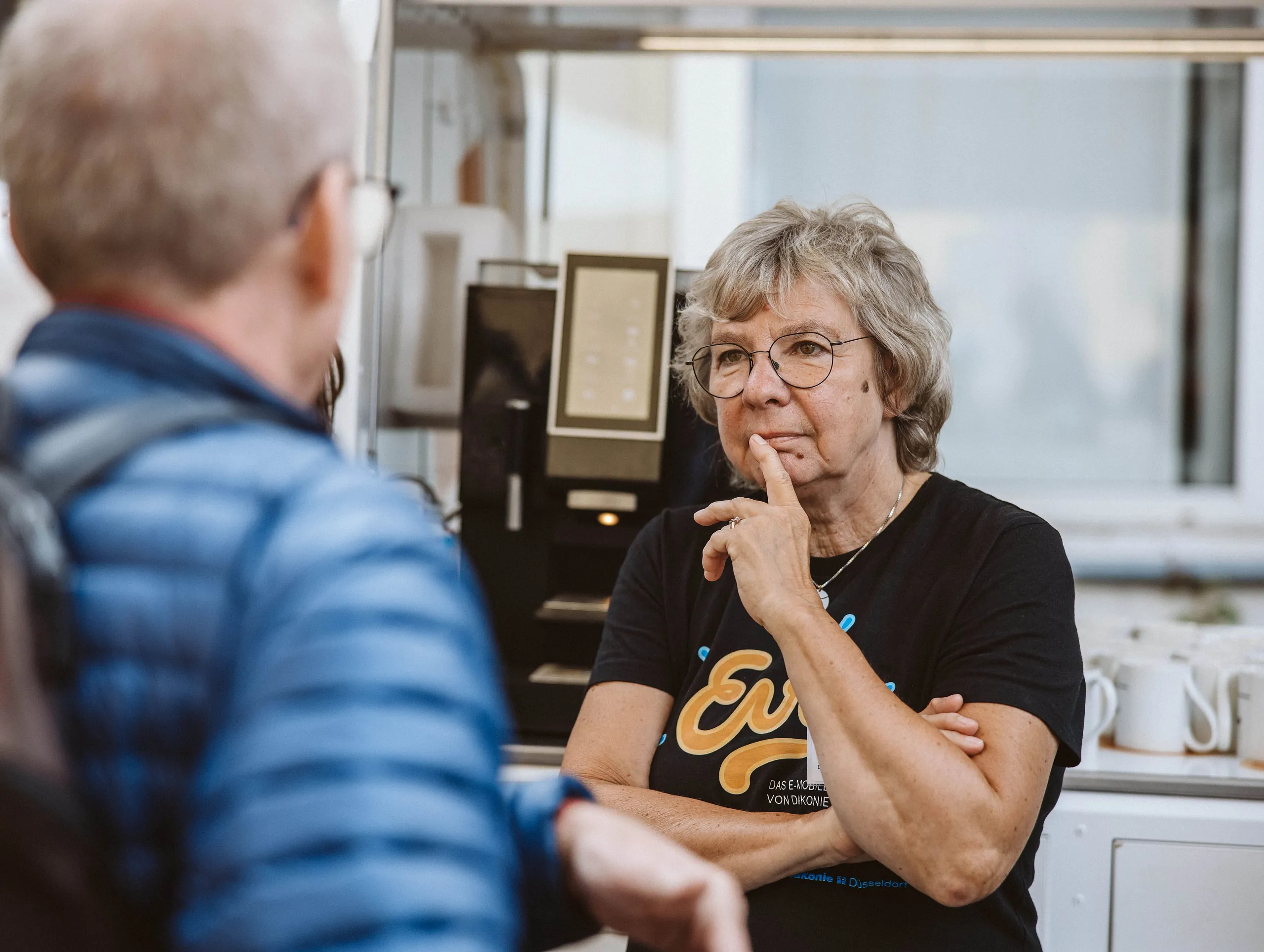 Evie ist das erste elektromobile Diakonie- und Kichencafé Deutschlands. Mit ihr sind unsere mobilen Seelsorger*innen in ganz Düsseldorf unterwegs und hören dir bei einer Tasse Kaffee zu.